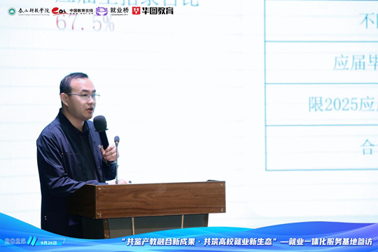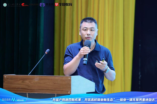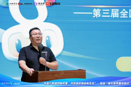 泰山科技學(xué)院副校長(zhǎng)丁?跉g迎辭中,對(duì)遠(yuǎn)道而來(lái)的參會(huì)代表表示熱烈歡迎,并系統(tǒng)介紹了學(xué)校的辦學(xué)特色與就業(yè)工作成果。他提到,學(xué)校始終以“信息產(chǎn)業(yè)商學(xué)院”為精準(zhǔn)辦學(xué)定位,依托“四位一體雙院制”人才培養(yǎng)模式,培養(yǎng)有專業(yè)知識(shí)背景的數(shù)字經(jīng)濟(jì)時(shí)代高情商經(jīng)營(yíng)管理人才,構(gòu)建起了“全程化、專業(yè)化、精細(xì)化、信息化”的就業(yè)服務(wù)體系,畢業(yè)生初次去向落實(shí)率連續(xù)多年穩(wěn)定在90%以上,年終去向落實(shí)率達(dá)98%左右,為區(qū)域經(jīng)濟(jì)社會(huì)發(fā)展輸送了大批高素質(zhì)優(yōu)秀人才。