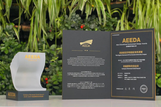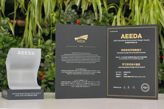 9月25日,備受矚目的2024-2025年度亞洲教育環(huán)境設(shè)計(jì)獎(jiǎng)(Asia Educational Environment Design Awards, 簡稱AEEDA)頒獎(jiǎng)典禮在西安皓唐國際酒店舉行。西安歐亞學(xué)院從亞洲范圍內(nèi)327個(gè)參評(píng)項(xiàng)目中脫穎而出,一舉斬獲校園更新改造金獎(jiǎng)、學(xué)習(xí)空間設(shè)計(jì)金獎(jiǎng)、校園景觀設(shè)計(jì)金獎(jiǎng)及學(xué)習(xí)空間設(shè)計(jì)銀獎(jiǎng),取得3金1銀的優(yōu)異成績,成為本年度該獎(jiǎng)項(xiàng)中獲獎(jiǎng)數(shù)量與質(zhì)量兼具、高校教育空間創(chuàng)新的標(biāo)桿范例。