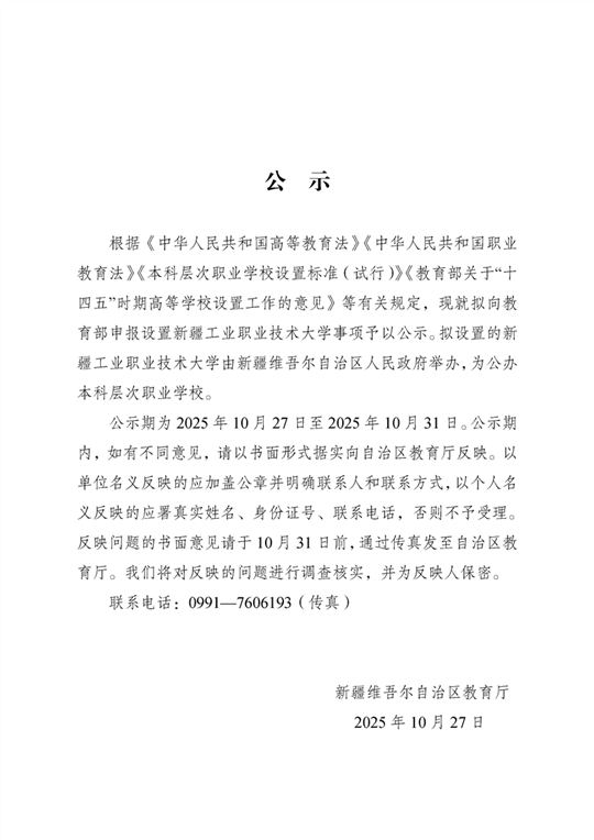 新疆擬設(shè)置新疆工業(yè)職業(yè)技術(shù)大學