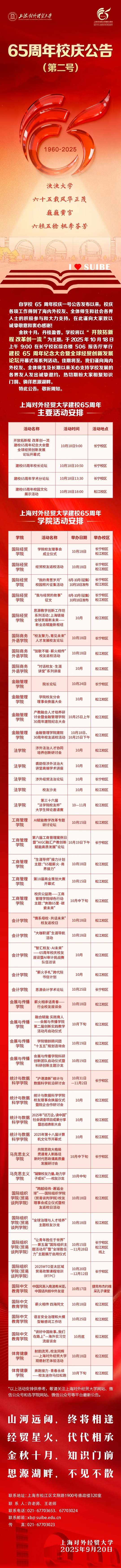 上海對(duì)外經(jīng)貿(mào)大學(xué)65周年校慶公告(第二號(hào))