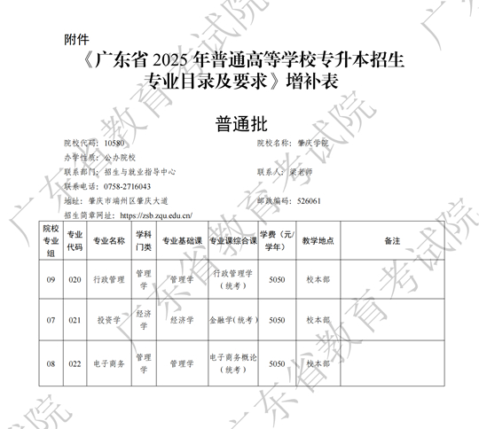 | 關(guān)于《廣東省2025年普通高等學(xué)校專升本招生專業(yè)目錄及考試要求》增補的公告(二) |