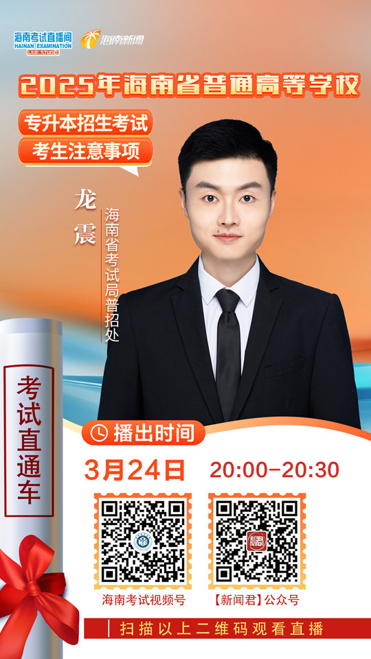 | 海南考試直播間3月24日20:00將開(kāi)播專升本考試注意事項(xiàng) |